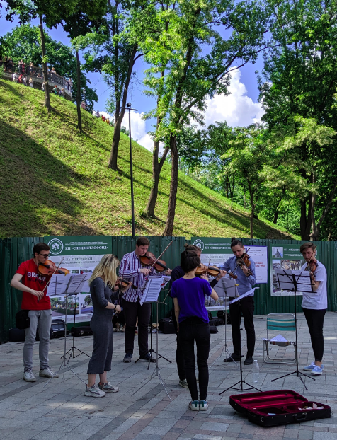Maria stopped to make a point to me as we walked that protesting by Ukrainians was rarely violent. We passed a set of people playing violin and other stringed instruments which, in the U.S., I would have assumed was for entertainment, but in this case was to raise awareness for a cause they were supporting.